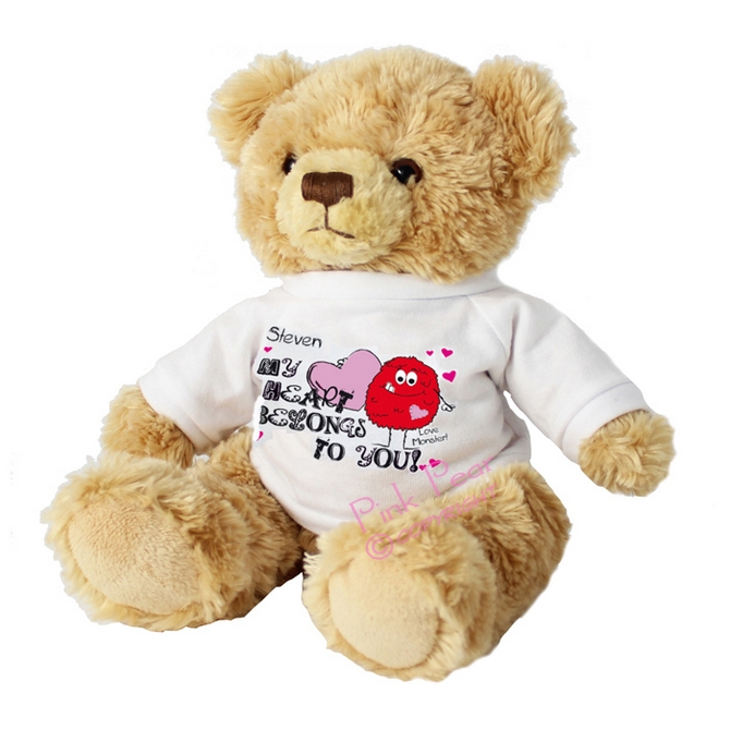 The words "My Heart Belongs To You" are standard but you can personalise this teddy with any message up to 12 characters.